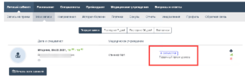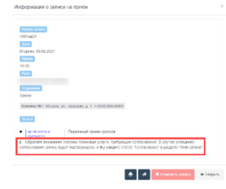 После записи в расписание на вкладке Мои записи для услуги будут отображаться статус согласования.