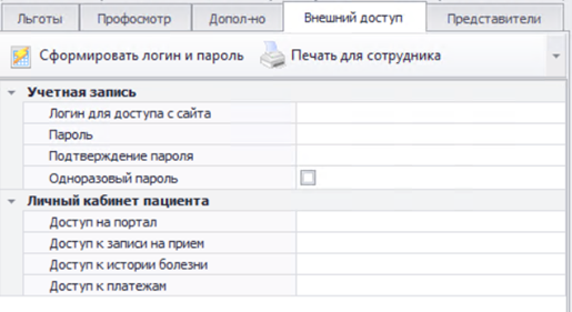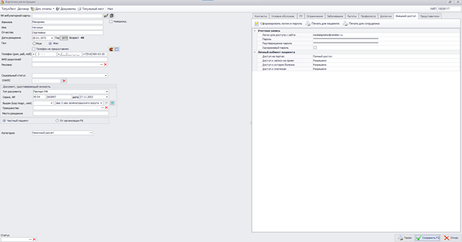 - В случае, если пациент зарегистрировался в Личном кабинете самостоятельно и сформировал личный пароль , то необходимо при его обращении открыть ему полный доступ в ЛИЧНЫЙ Кабинет пациента – см п.2.1 пп. 2-4.