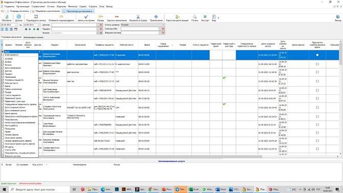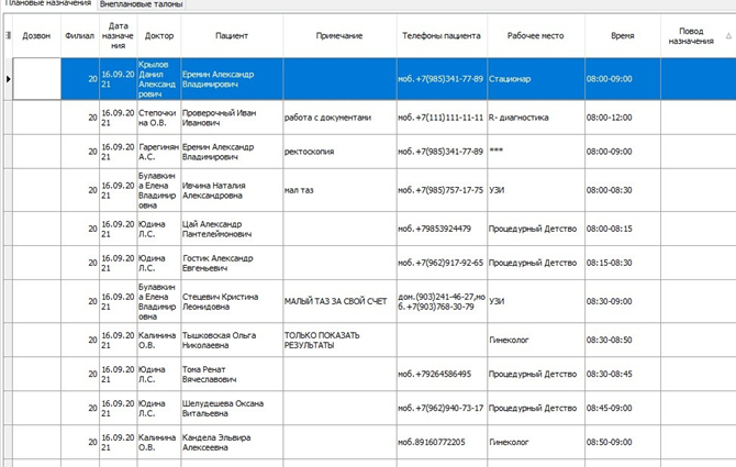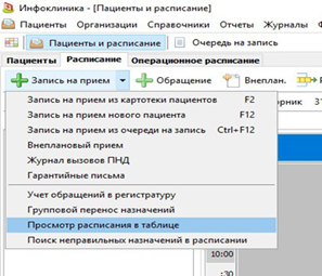 1.Для этого по кнопке Запись на прием переходим во вкладку просмотр расписания в таблице В ней отображаются все запланированные записи