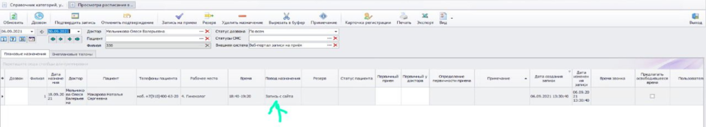- Необходимо в течении рабочего дня осуществить обзвон клиентов, записавшихся в режиме он-лайн (в текущем дне, вчера вечером или ночью) – с пометкой « Запись с сайта» , подтвердить актуальность записи у пациента и подтвердить ее состоятельность: