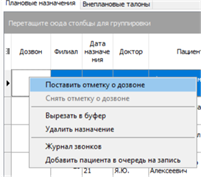- · в Расписании автоматически появляются значки о необходимости позвонить пациенту