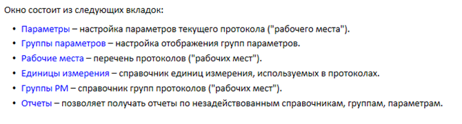 - Контроль настроек Протоколов, доступных для просмотра пациенту Создание и настройка протоколов выполняется в окне справочника Настройка параметров истории болезни. Оно объединяет несколько закладок, необходимых для настройки параметров, входящих в протоколы ИБ. В рамках МИС «Инфоклиника» протокол носит название «Рабочее место» (РМ)