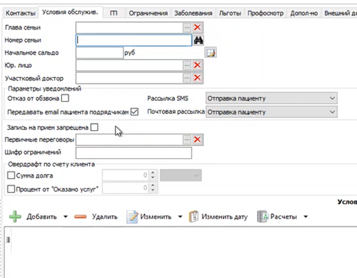 А на вкладке «условия обслуживания» — поставить галочку «передавать email пациента подрядчикам»
