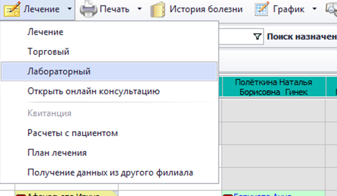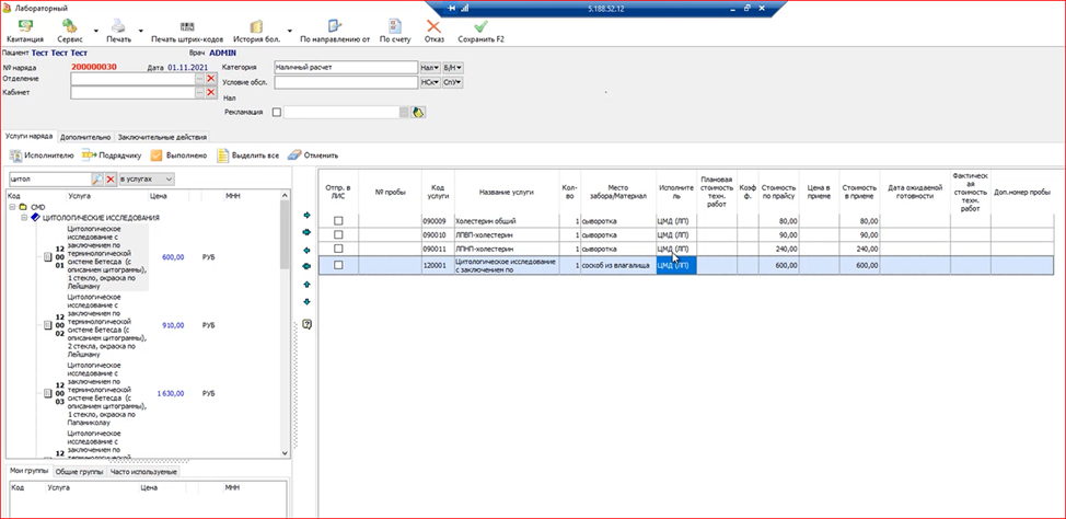 Для оформления пациенту лабораторного счета выполните следующие действия: