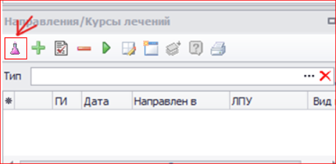 2.В правой части картотеки, в блоке Направления/Курсы лечений нажмите кнопку Лабораторный счет.