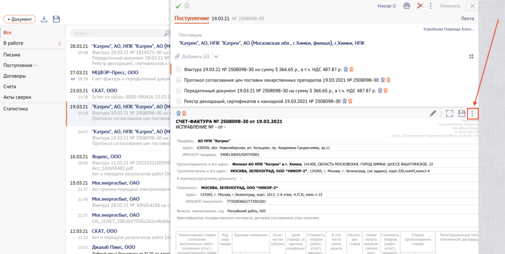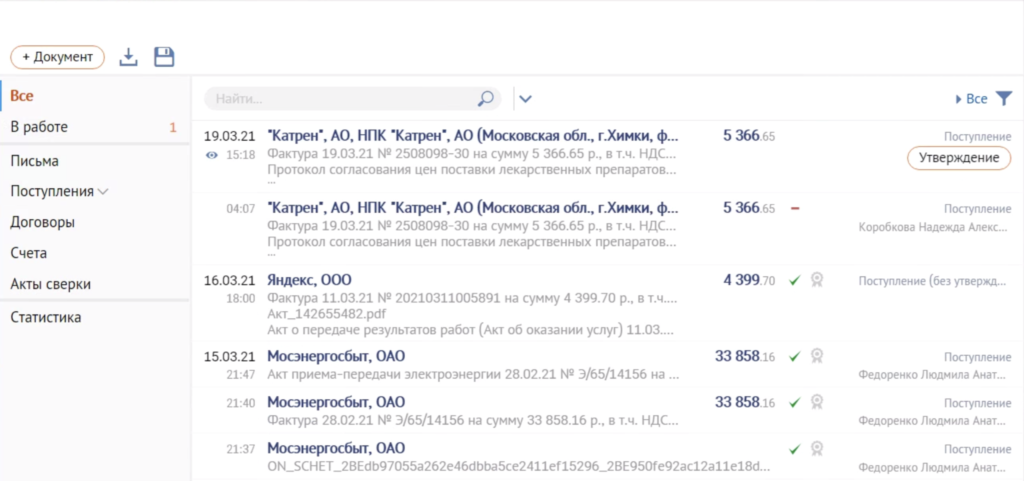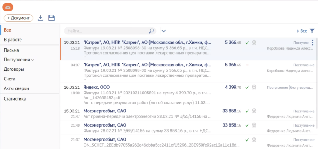 Перед вами будет список документов электронного оборота по выбранной вами компании.
