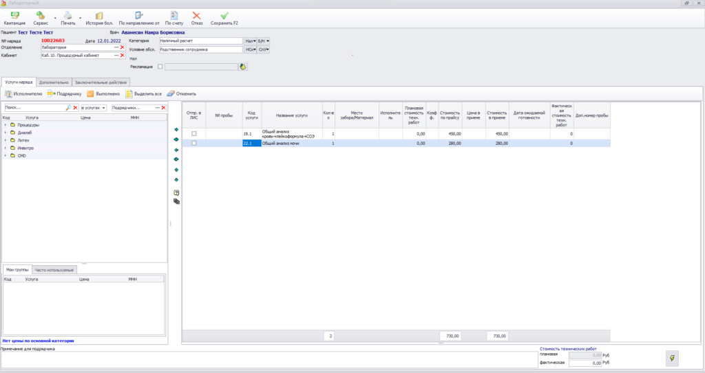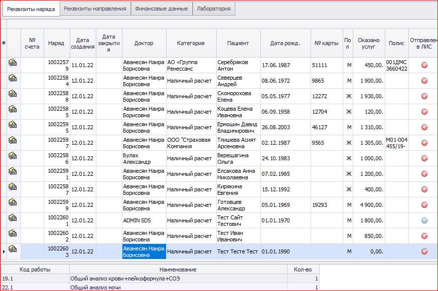 • журнал лабораторных нарядов, помогает нам вести учет пациентов, контролировать движение лабораторных проб, следить за поступлением результатов.