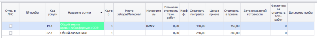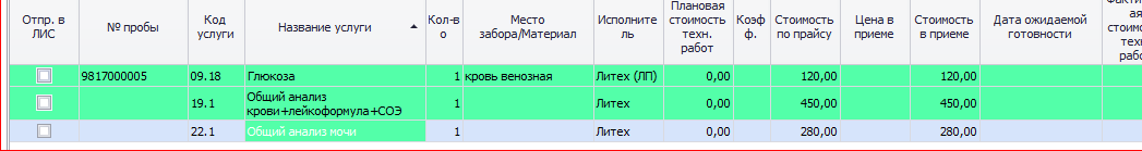 •Выполнено – нужно нажать сразу после осуществления забора материала для тех услуг, которые осуществляются вами.
